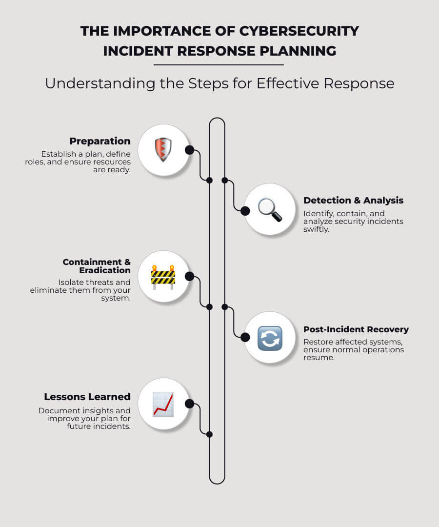 A well structured incident response plan follows a clear sequence. Here is how each phase works in practice: